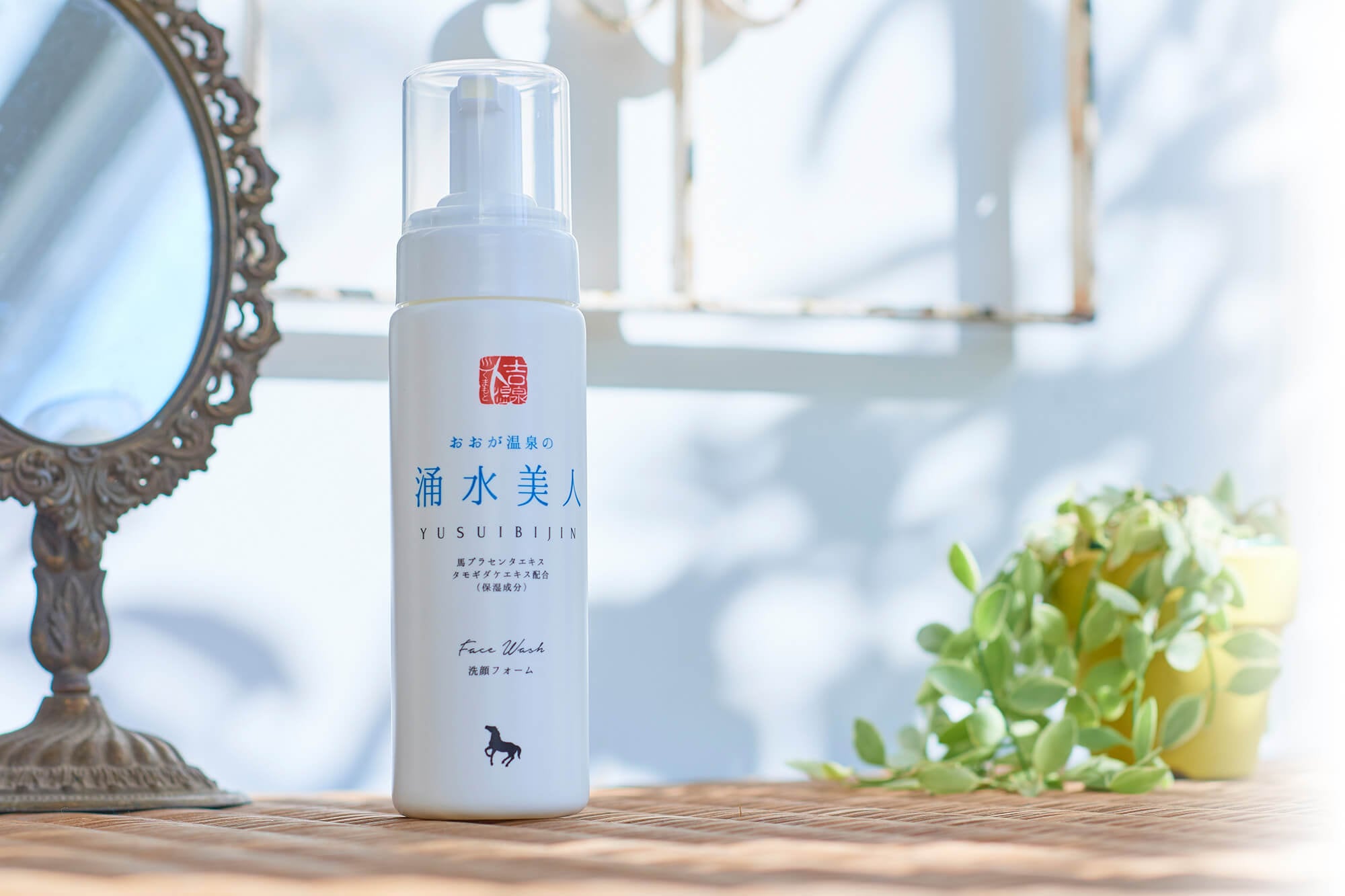美人湯で有名な熊本・人吉の「おおが温泉」の温泉水に馬プラセンタエキス・馬セラミドを配合し、